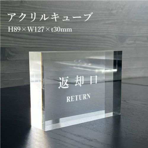 屋内用 30mm の厚みの透明アクリルが高級感と存在感を生み出します。 アクリルキューブ 返却口 acrylcUbe-8