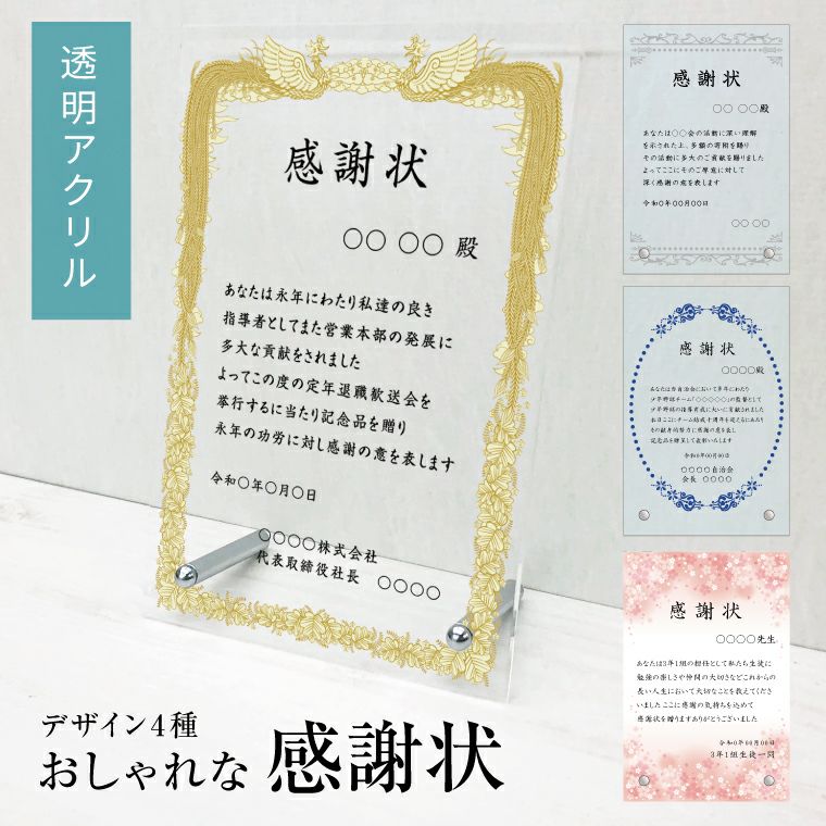 スタンド型 自立 アクリルプレート 感謝状 表彰状 名入れ プレゼント ギフト 記念品 盾 退職 会社 先生 両親 町内会 社内コンペ ボーリング大会 フットサル スポーツ大会 運動会 社内イベント認定証 周年記念 勤続表彰 両親