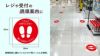 スーパー、コンビニ等のお店のレジ誘導案内ステッカー フロアステッカー お待ちください cash-20-01sty