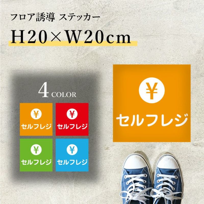 店舗、カフェ、モール等のお店のレジ誘導案内ステッカー フロアステッカー セルフレジ cash-20-06sty