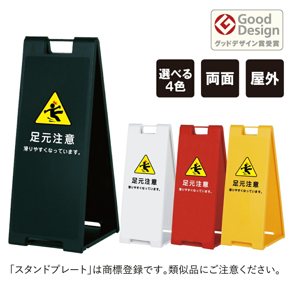 便利な折り畳み式スタンドサイン。黄色・赤・黒・白の4色から選べる スタンドプレート大 足元注意 SP-900-18
