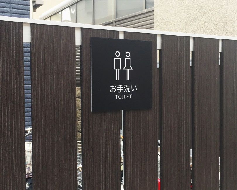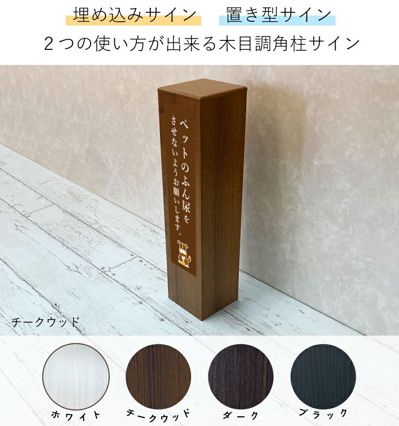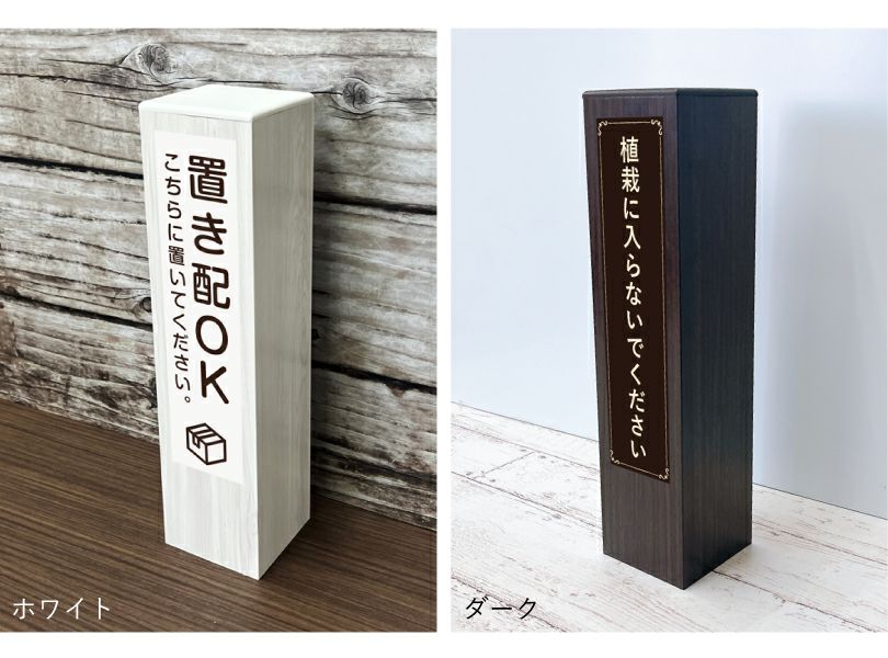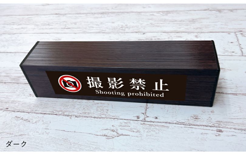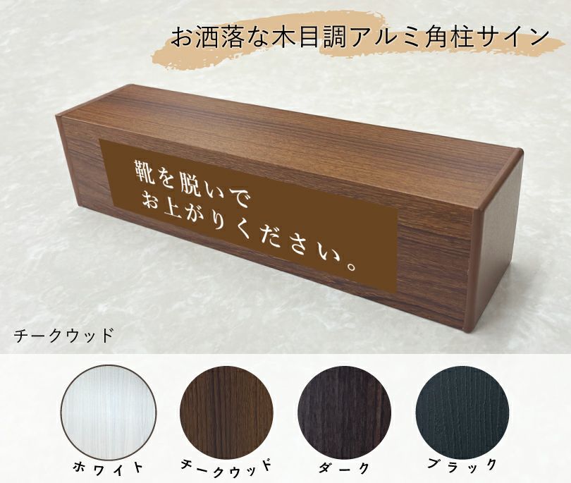 木目調のおしゃれな置き型サイン。ご希望のデザインでお作りいたします。 木目調 アルミ角柱サイン 置き型 slendsign-cut