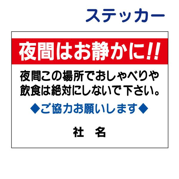看板設置が難しい場所や、古い看板をリニューアル! 看板風注意ステッカー 夜間はお静かに S-58ST