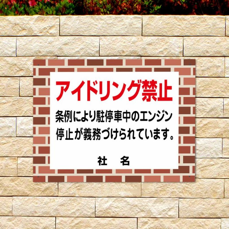 レンガフレーム風注意看板 オリジナル看板 レンガフレーム アイドリング禁止 flb-4