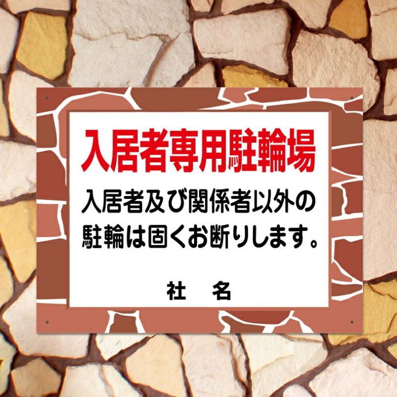 石積み風注意看板 オリジナル看板 石積みフレーム 入居者専用駐輪場 fls-2