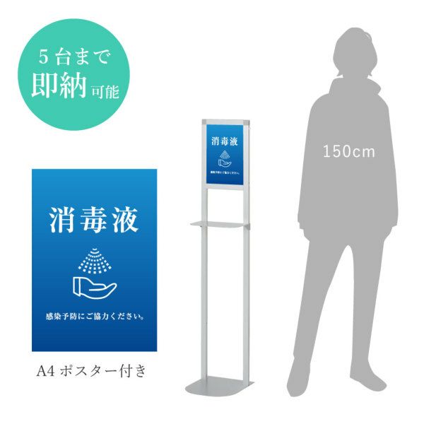オリジナルポスター追加で消毒台+宣伝ポスターが1台に! 消毒液スタンド シルバー A4ポスター付き DSL-120S