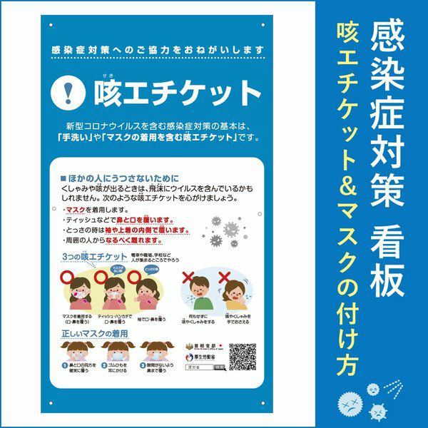 新型コロナウイルスを含む感染症対策の基本が掲載された看板 咳エチケット看板 infection01pp