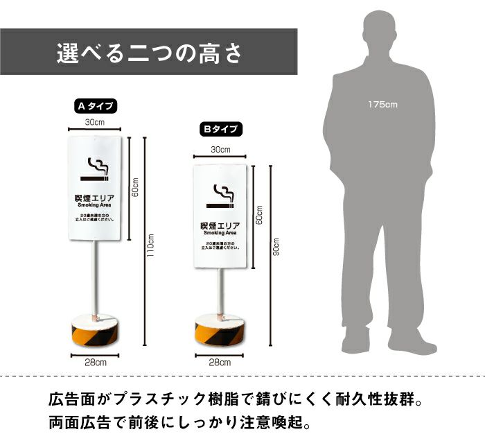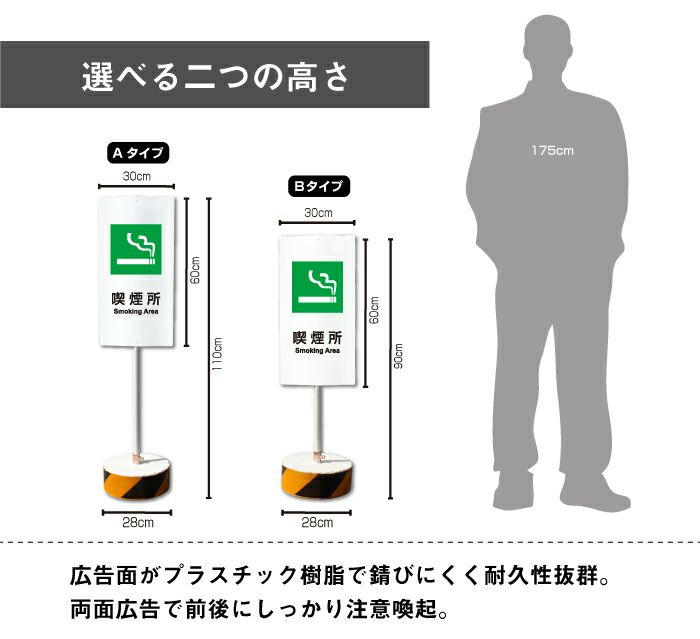 他の画像を見る 屋外対応 錆びに強い樹脂製広告面で倒れにくい当店オリジナルスタンド看板 まかせなサイン 喫煙所 os-44-whblock 屋外 両面 ¥ 18,810 税込 会員特別価格 ¥ 17,869 税込 (0件) 詳細を見る お気に入りに登録する