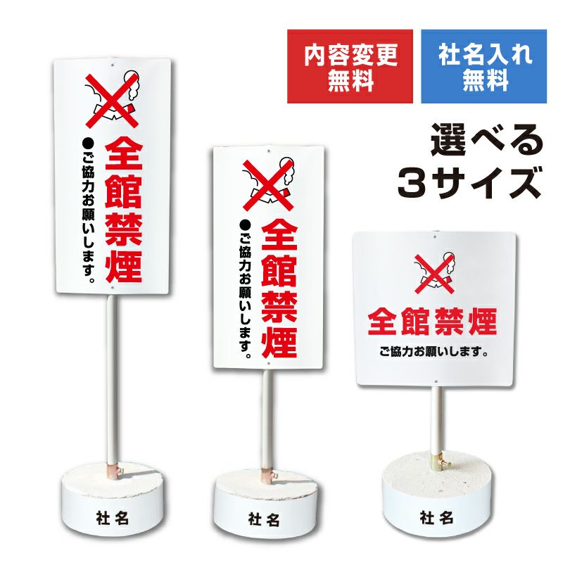 他の画像を見る 屋外対応 内容変更無料 コンクリートブロック付き まかせなサイン Cタイプ 全館禁煙 os-c-30 屋外 両面 ¥ 18,810 税込 会員特別価格 ¥ 17,869 税込 (0件) 詳細を見る お気に入りに登録する