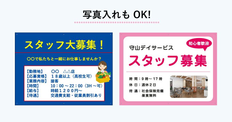 他の画像を見る ご希望のデザインで製作する募集看板 屋外対応 看板製作 求人看板 H450×W600mm 従業員募集 スタッフ募集 joboffer-450 デザイン自由 ¥ 14,520 税込 会員特別価格 ¥ 13,794 税込 5.00 (2件) 詳細を見る お気に入りに登録する