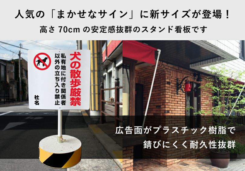 屋外対応 錆びに強い樹脂製広告面で倒れにくい当店オリジナルスタンド看板 まかせなサイン 不法投棄厳禁 社名・名前入り os-15-whblock