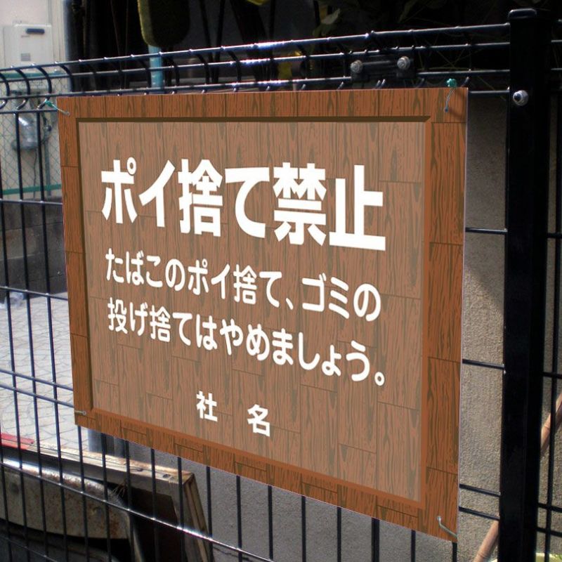 木目調風注意看板 オリジナル看板 ウッドフレーム ポイ捨て禁止 flw-9