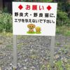 屋外対応 耐水性◎砂利や更地に支柱を埋め込んで注意喚起 2本足支柱付き 餌をあげないで ssl-18