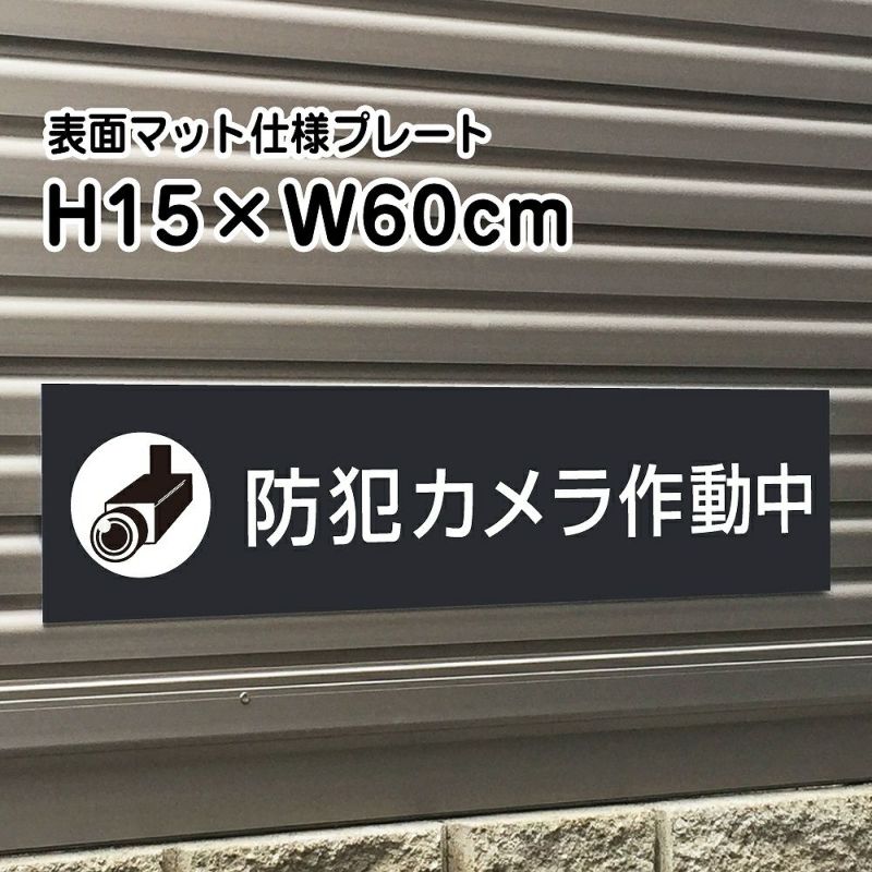 マットな質感でおしゃれな屋外用プレート 防犯カメラ作動中 マットブラック プレート bla15-1