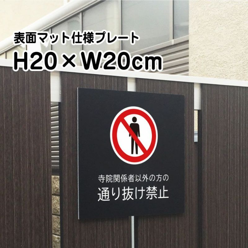 マットな質感でおしゃれな屋外用プレート 神社 寺院 お寺 に 寺院 通り抜け禁止 マットブラック プレート bla20-23