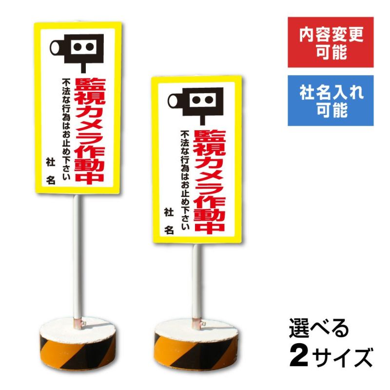 高さが選べる2タイプ!不法行為抑制看板 まかせなサイン 監視カメラ作動中看板 os-29
