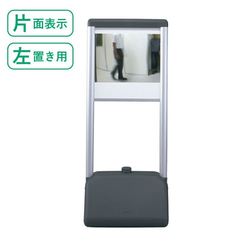 出入口の安全確認に!移動できるミラースタンドサイン ▼ 【片面】サインシックAタイプ FFミラー 左置き 865-942