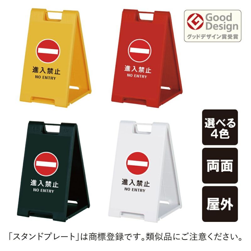 便利な折り畳み式スタンドサイン。黄色・赤・黒・白の4色から選べる スタンドプレート小 進入禁止 SP-600-12