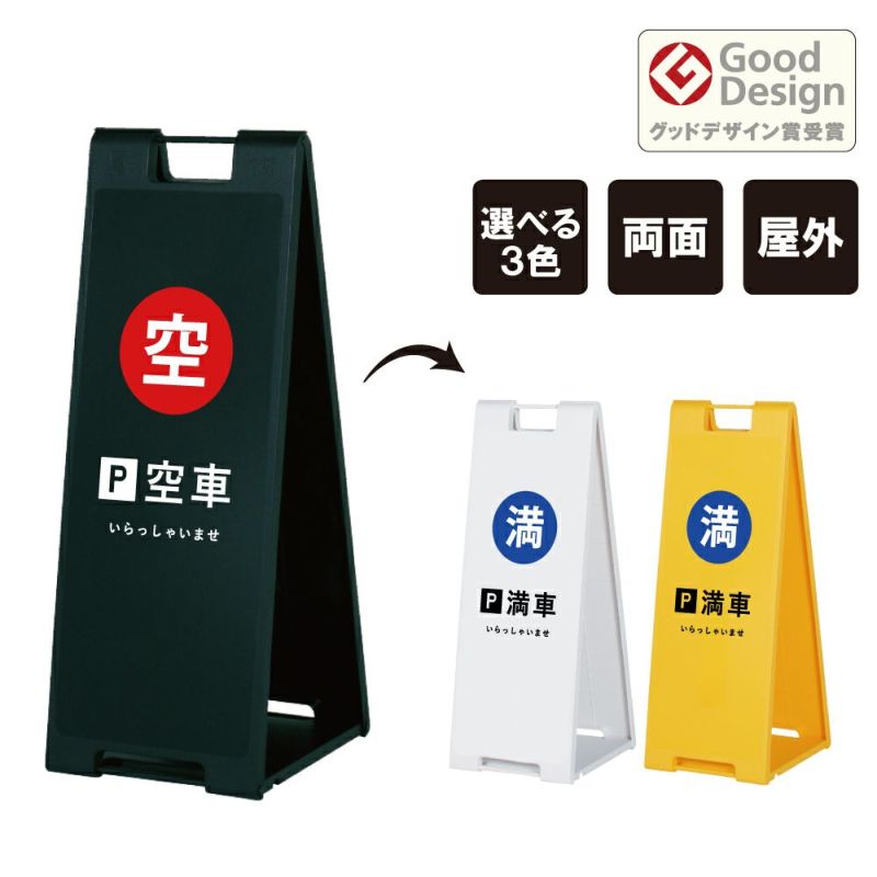 持ち運びに便利な折り畳み式スタンドサイン。黄色・赤・黒・白の4色から選べる スタンドプレート大 両面 駐車場 空車 満車 fi-sp-900-30