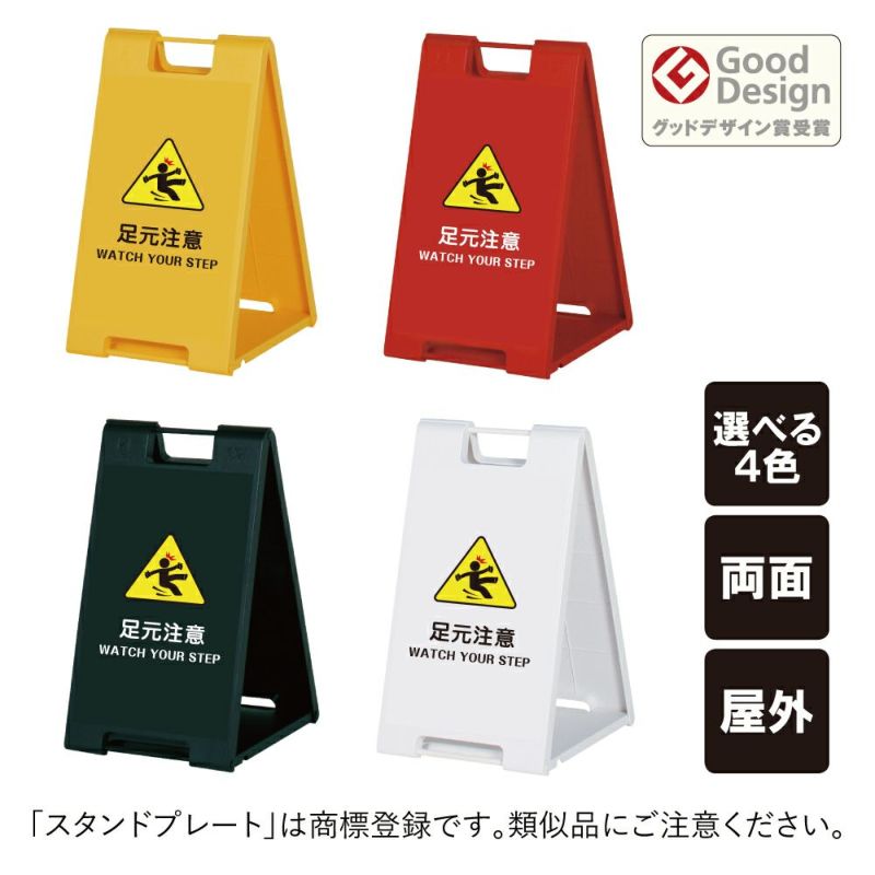 便利な折り畳み式スタンドサイン。黄色・赤・黒・白の4色から選べる スタンドプレート小 足元注意 SP-600-19