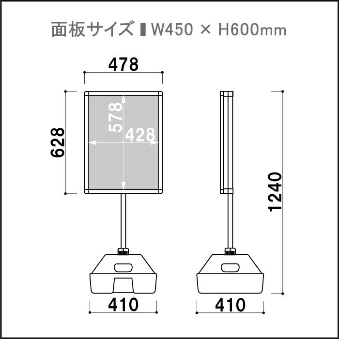 他の画像を見る 表示面印刷承ります! 水を入れるだけの屋外スタンド ▼ ウォーターベースサイン 黒 両面 WTB-859 送料無料 屋外 両面 無地 デザイン自由 ¥ 36,300 税込 会員特別価格 ¥ 34,485 税込 (0件) 詳細を見る お気に入りに登録する