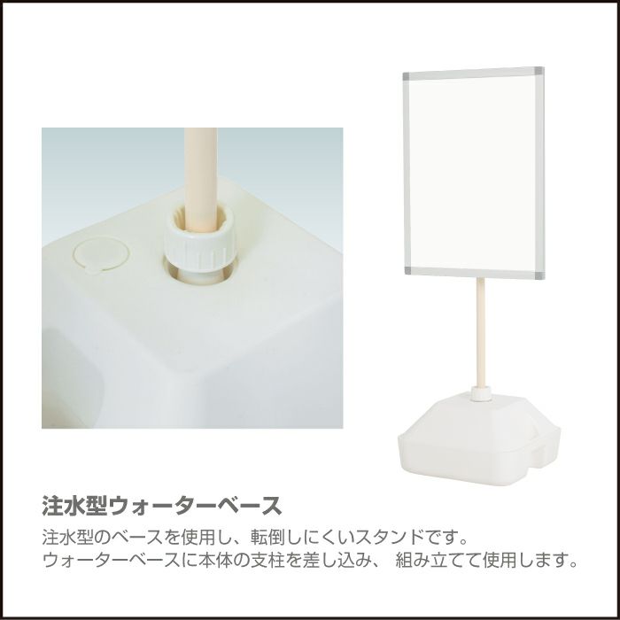 他の画像を見る 表示面印刷承ります! 水を入れるだけの屋外スタンド ▼ ウォーターベースサイン 白 片面 WTN-456 屋外 片面 無地 デザイン自由 ¥ 20,900 税込 会員特別価格 ¥ 19,855 税込 (0件) 詳細を見る お気に入りに登録する