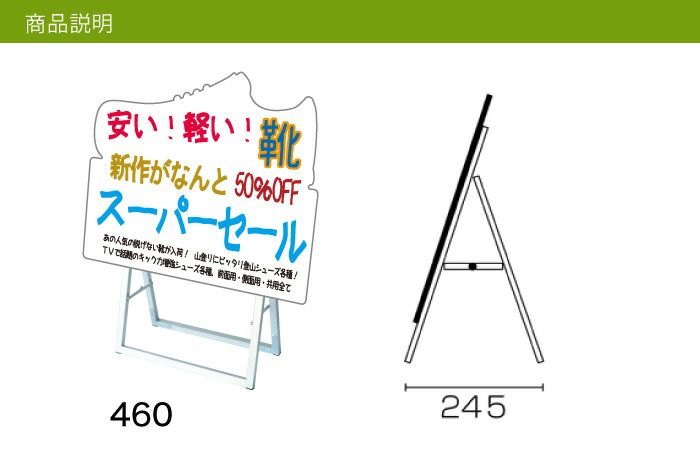 他の画像を見る 風でパネルが揺れて、アイキャッチ効果 UP! スイングサイン tkw-bswsac-a2toumei 送料無料 屋外 片面 デザイン自由 ¥ 45,980 税込 会員特別価格 ¥ 43,681 税込 (0件) 詳細を見る お気に入りに登録する
