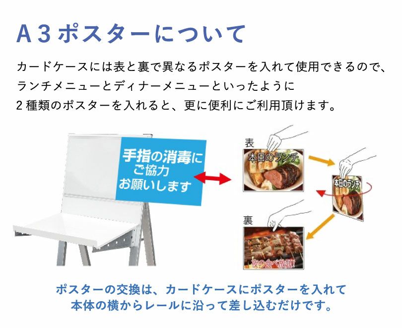 他の画像を見る ラックスタンド看板 展示 テンプル提示 メニュー ポスター掲示 ラックスタンド看板 ブラック tkw-RASKA-A3YB 送料無料 屋外 屋内 A3 ¥ 41,690 税込 会員特別価格 ¥ 39,605 税込 (0件) 詳細を見る お気に入りに登録する