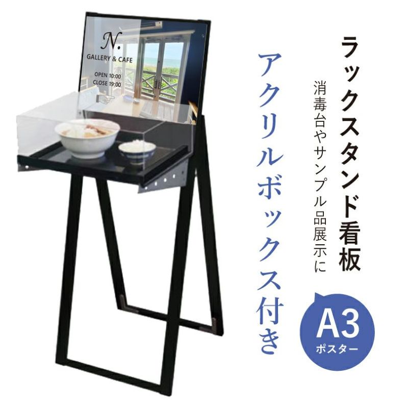 ラックスタンド看板 サンプル品 展示台付き スタンド什器 スタンド看板 消毒液ボトル台 記帳台 サンプル提示 飲食店 消毒台 受付 メニュー表 ディスプレイスタンド