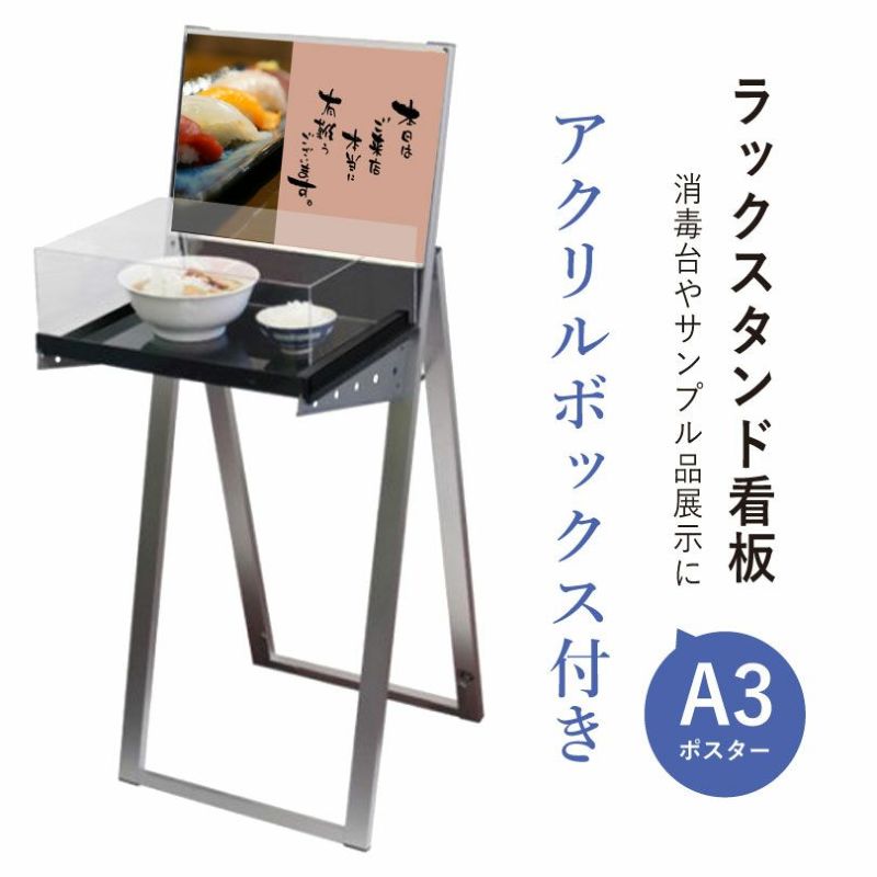 置き看板 ラックスタンド看板 屋内 屋外 A3ポスター サンプル品 展示台付き スタンド什器 スタンド看板 消毒液ボトル台 記帳台 サンプル提示 飲食店 消毒台 受付 メニュー表 ディスプレイスタンド 店舗