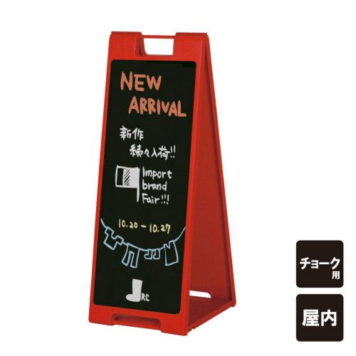 カフェやサロン、飲食店などのお店に。折りたたみ可能な黒板付きA型看板 ▼ 黒板Aサイン レッド チョーク SP-912