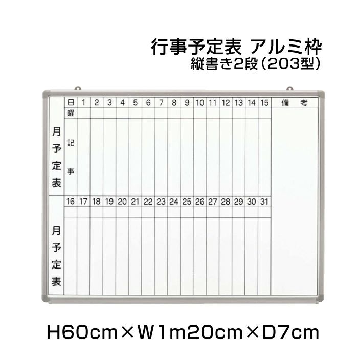 壁掛け 行事予定表 ホワイトボード 事務 日程表 月予定表 90×1m20cm ni-HGW34S-203