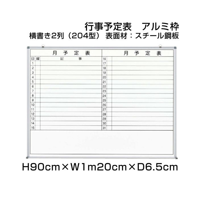 壁掛け 行事予定表 ホワイトボード 事務 日程表 月予定表 90×1m20cm ni-WS34-204