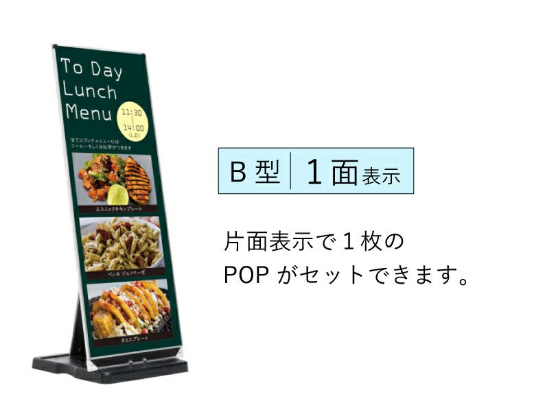 他の画像を見る 案内表示を差し替えて使える大型・軽量の看板です ミセル差替え式看板 B 型 ot-569-431-7 送料無料 屋内 片面 デザイン自由 ¥ 49,390 税込 会員特別価格 ¥ 46,920 税込 (0件) 詳細を見る お気に入りに登録する