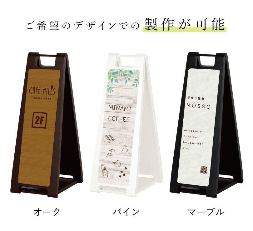 他の画像を見る カフェや美容室、店舗の営業案内にも。 【デザイン代込】スタンドプレート スリム SP-200-dk 送料無料 屋外 両面 デザイン自由 ¥ 22,220 税込 会員特別価格 ¥ 21,109 税込 (0件) 詳細を見る お気に入りに登録する