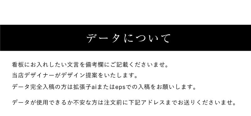 他の画像を見る オーダーメイド・デザイン込み!平看板 看板製作 オーダーメイド 店舗看板 H600×W900mm 特注看板 order-s600 送料無料 デザイン自由 ¥ 24,860 税込 会員特別価格 ¥ 23,617 税込 (0件) カートに入れる お気に入りに登録する
