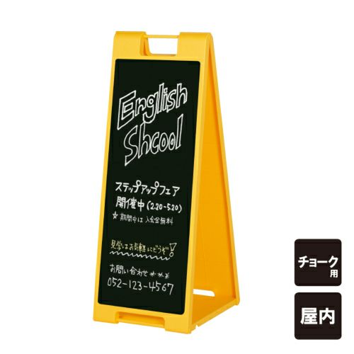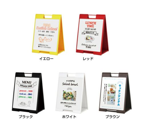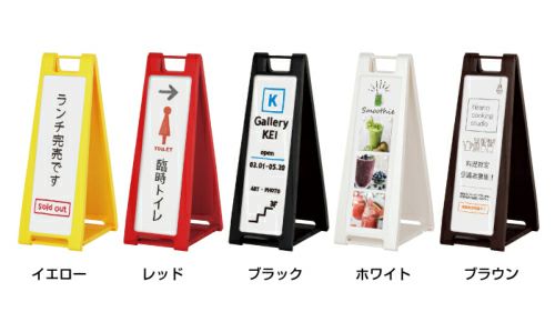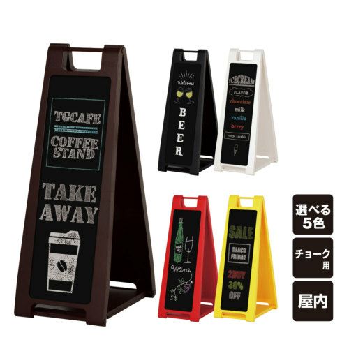 持ち運びに便利な折り畳み式スタンドサイン。黄・赤・黒・白・茶の5色 黒板A看板 スタンドプレート ちょ大 チョーク SP-710
