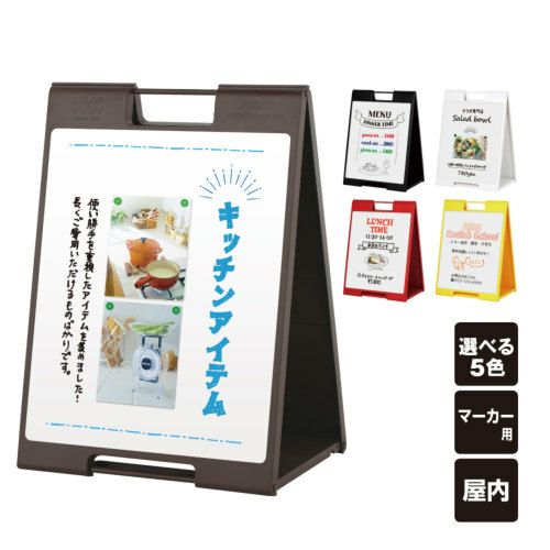 折り畳み式スタンドサイン。黄・赤・黒・白・茶の5色から選べる 黒板A看板 スタンドプレート ちょ大 マーカー SP-720