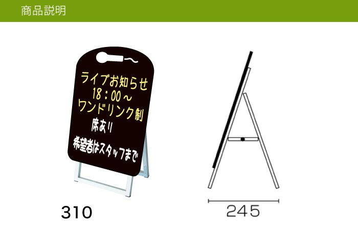 カフェや美容室、飲食店などに。メニューボードや案内ボードとしても。 黒板A看板 スタンドプレート スリム チョーク SP-210