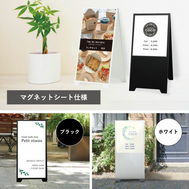 他の画像を見る カフェや美容室、飲食店、レストランにも。メニューボードや店舗看板に スチール製スタンドプレート マグネット仕様 黒 白 sp-steel 屋外 片面 両面 デザイン自由 ¥ 17,050 税込 会員特別価格 ¥ 16,197 税込 5.00 (1件) 詳細を見る お気に入りに登録する