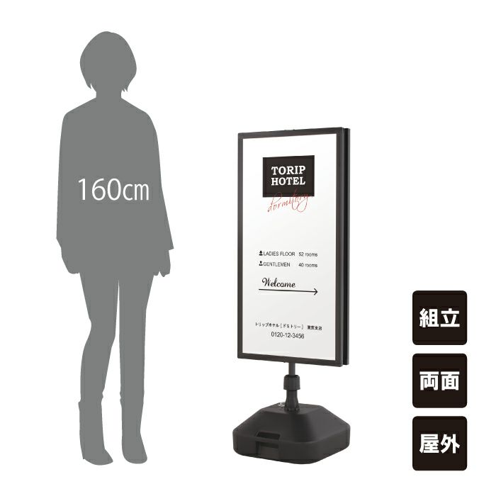 他の画像を見る 表示面印刷承ります! 水を入れるだけの屋外スタンド ▼ ウォーターベースサイン 黒 両面 WTB-859 送料無料 屋外 両面 無地 デザイン自由 ¥ 36,300 税込 会員特別価格 ¥ 34,485 税込 (0件) 詳細を見る お気に入りに登録する