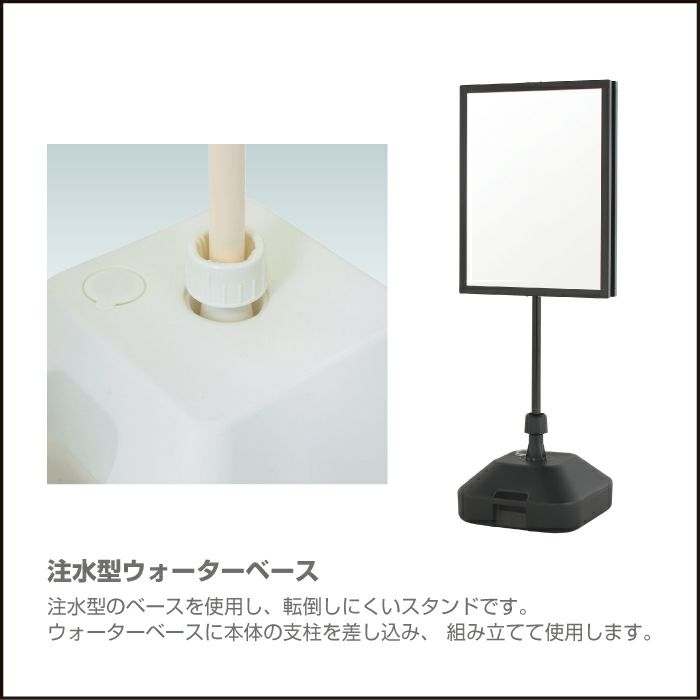 他の画像を見る 表示面印刷承ります! 水を入れるだけの屋外スタンド ▼ ウォーターベースサイン 黒 両面 WTN-856 送料無料 屋外 両面 無地 デザイン自由 ¥ 31,680 税込 会員特別価格 ¥ 30,096 税込 (0件) 詳細を見る お気に入りに登録する