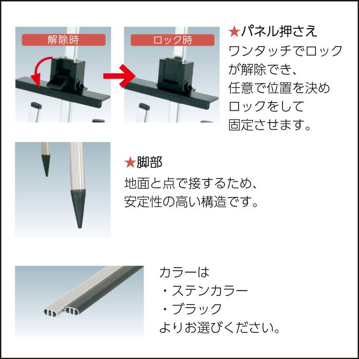 支柱色ブラック・ブロンズが新登場!パネルをスライドさせて「空」「満」を簡単切替 2本足支柱付き スライドパネル式 シルバーアルミ複合板 bssl-park-slide
