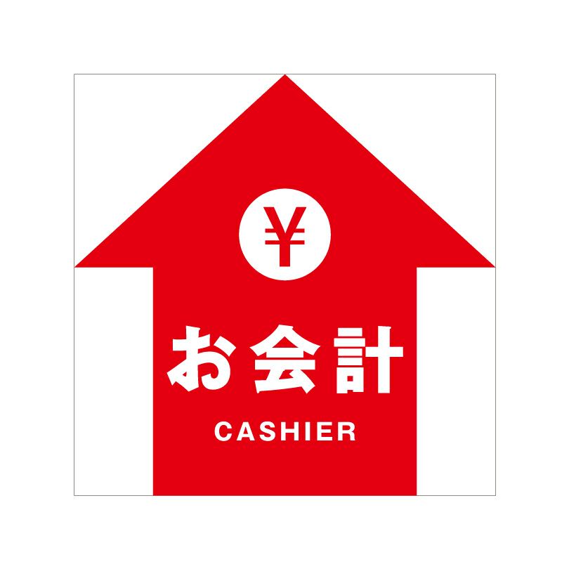 店舗、カフェ、モール等のお店のレジ誘導案内ステッカー フロアステッカー お会計 cash-20-05sty