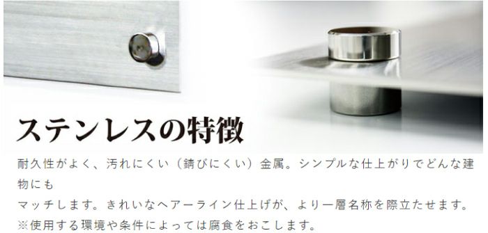 他の画像を見る 会社、店舗、建物の名称看板を低価格でおしゃれに製作! お手軽銘鈑 ステンレス om-sushlk-200-400 送料無料 屋外 デザイン多数あり ¥ 29,040 税込 会員特別価格 ¥ 27,588 税込 (0件) 詳細を見る お気に入りに登録する
