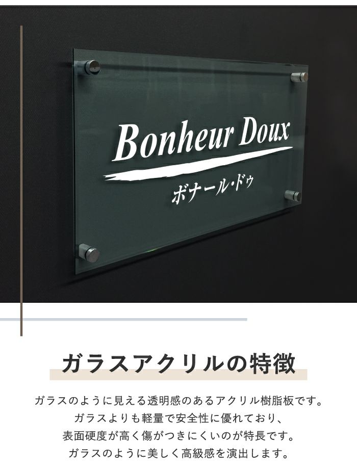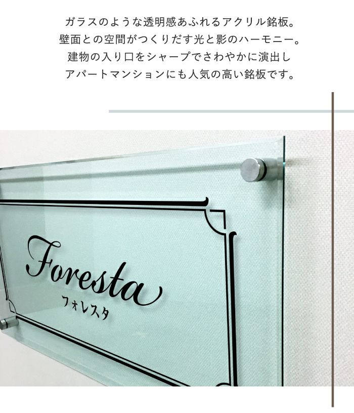 他の画像を見る ガラスのような透明感のあるアクリル銘板。アパート銘板 マンション看板 お手軽銘鈑 ガラス調アクリル otCG306008k-K 送料無料 屋外 デザイン多数あり ¥ 34,870 税込 会員特別価格 ¥ 33,126 税込 5.00 (1件) 詳細を見る お気に入りに登録する