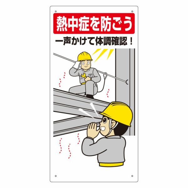 壁面取り付けタイプの熱中症対策標識。 熱中症対策標識 一声かけて体調確認 H600×W300mm un-HO-518
