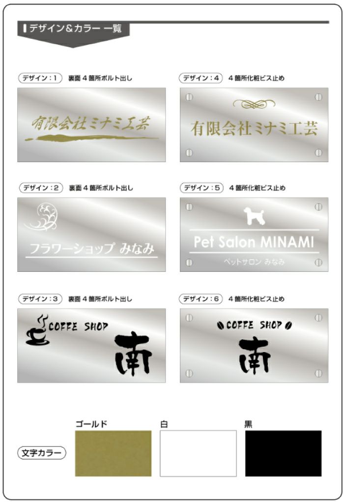 他の画像を見る 会社、店舗、建物の名称看板を低価格でおしゃれに製作! お手軽銘鈑 ステンレス om-sushle-200-400 送料無料 屋外 デザイン多数あり ¥ 67,320 税込 会員特別価格 ¥ 63,954 税込 (0件) 詳細を見る お気に入りに登録する