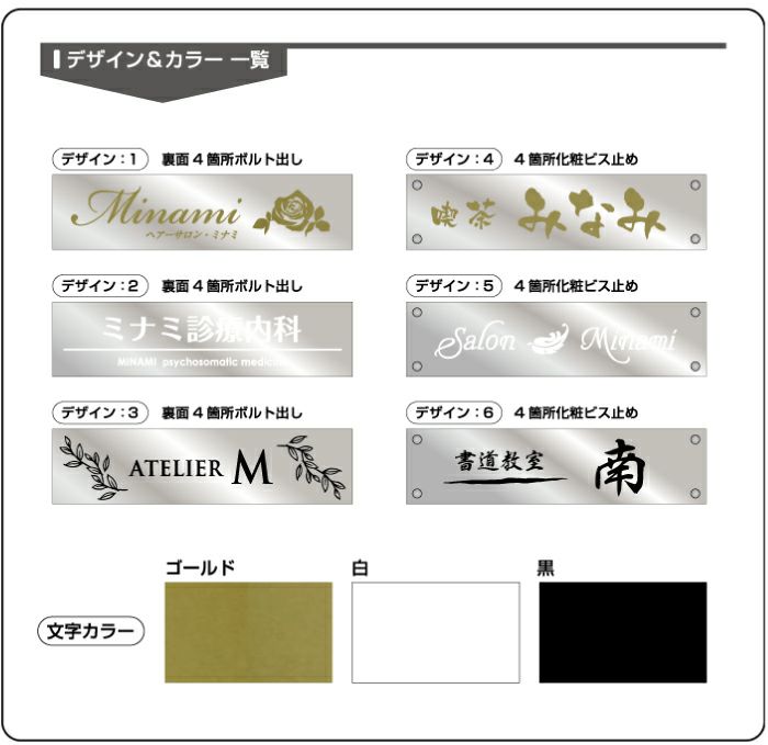 他の画像を見る 会社、店舗、建物の名称看板を低価格でおしゃれに製作! お手軽銘鈑 ステンレス om-sushle-100-400 送料無料 屋外 デザイン多数あり ¥ 56,760 税込 会員特別価格 ¥ 53,922 税込 (0件) 詳細を見る お気に入りに登録する