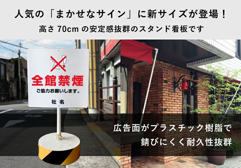 他の画像を見る 屋外対応 内容変更無料 コンクリートブロック付き まかせなサイン Cタイプ 全館禁煙 os-c-30 屋外 両面 ¥ 18,810 税込 会員特別価格 ¥ 17,869 税込 詳細を見る お気に入りに登録する